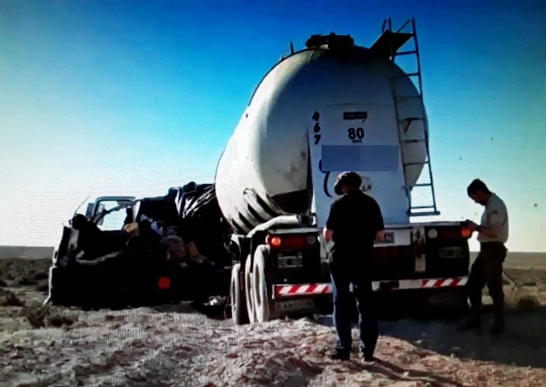 Las primeras informaciones indican que el fallecido es un adulto mayor que residía en Caleta Olivia y conducía el camión petrolero, no trascendiendo su identidad.