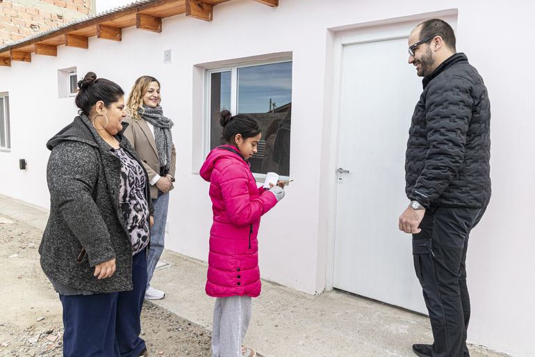 En el barrio Máximo Abásolo, la vivienda fue entregada a una familia compuesta por cuatro niños que, tras el fallecimiento de sus padres, quedaron al cuidado de su tía paterna. En tanto, en La Cantera (Km 8), la casa fue adjudicada a un grupo familiar con siete hijos en edad escolar, que había atravesado reiteradas situaciones de desalojo y no contaba con lote propio.