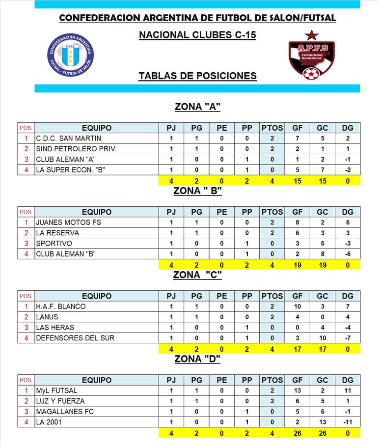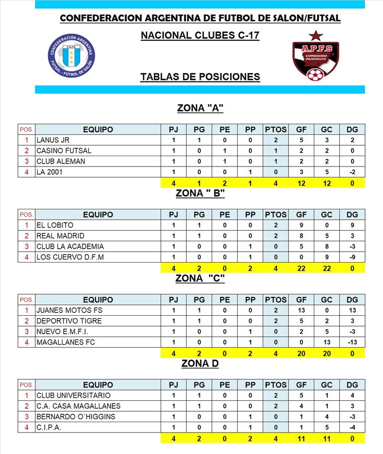 Este domingo dio comienzo en Comodoro Rivadavia el Torneo Argentino de Clubes Sur C-15 y C-17 de fútbol de salón, que organiza la Asociación Promocional, con la fiscalización de la Confederaciòn Argentina (CAFS).