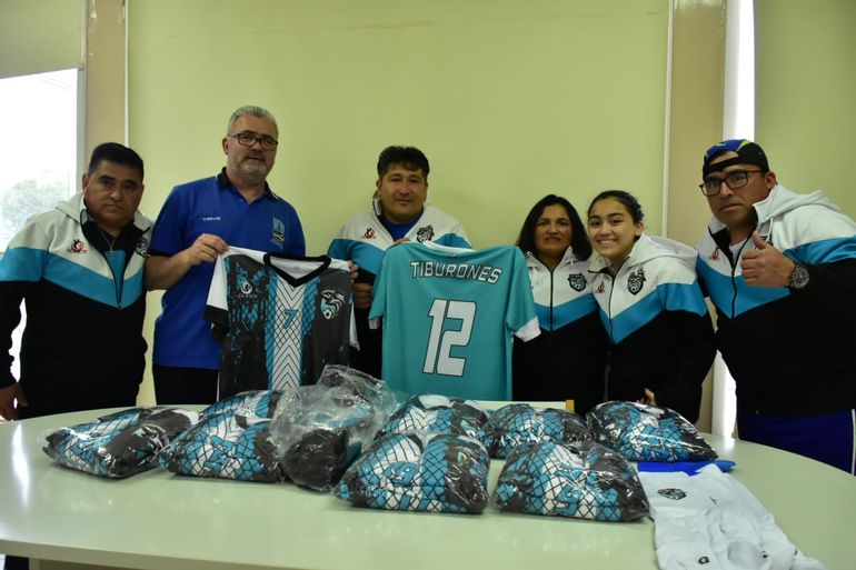 Los integrantes del club Tiburones recibieron nueva indumentaria deportiva en el marco de apoyo a las entidades deportivas por parte del Ente Autárquico Comodoro Deportes.