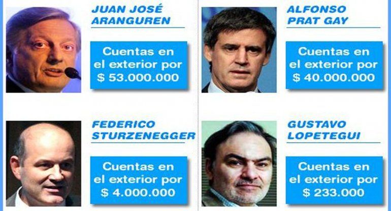 Ante la Oficina Anticorrupción (OA), el ministro de Energía y Minería de la Nación, Juan José Aranguren, declaró que posee una caja de ahorros en euros con pesos argentinos equivalentes a 4.292.070; y otra en los Estados Unidos con $49.482.790. El ex CEO de Shell local aún no anunció si repatriará el dinero, tal como lo pidió el presidente Mauricio Macri a los argentinos.