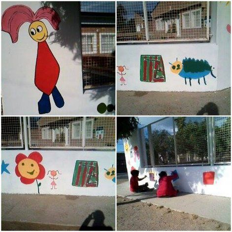 "Son dibujos nuevos, los nenes los dibujan y los adultos los pasamos a las paredes.El paredón del Jardín lo arreglo un papá y el proyecto se llevó a cabo gracias a la profe Carolina y la colaboración de las familias", dijo Inés Mercedes Sosa, directora del jardín a El Patagónico.