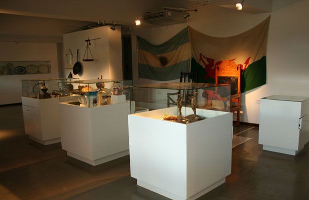 Por último, en el tercer piso, se adaptó la sala para muestras itinerantes. El lugar ofrece una vista del pueblo que nació a los pies del viejo edificio y una variadísima colección de tazas, latas, teteras que sirvieron durante la ceremonia del té, costumbre arraigada en la cultura galesa desde tiempos ancestrales.