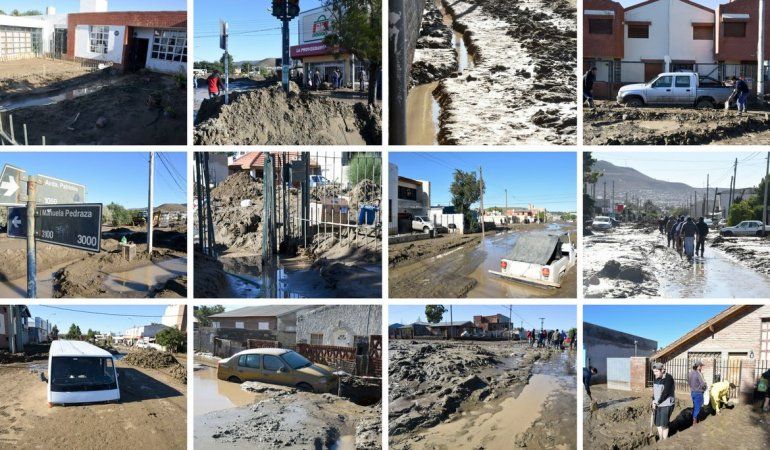Los vecinos del barrio Juan XXIII tuvieron que contar con la ayuda de amigos y familiares, que con palas permitieron que algunos vecinos pudieran habilitar un acceso a sus viviendas pero sin poder bajar de manera significativa el metro de lodo que inunda las calles.