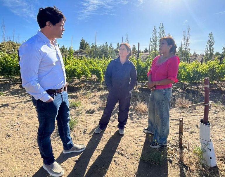 Durante la recorrida se evaluaron los avances del proyecto y las tareas productivas en marcha, orientadas a fortalecer esta experiencia que posiciona a Caleta Olivia como un punto de referencia provincial en materia de producción vitivinícola y diversificación productiva.