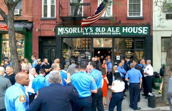 En las paredes del pub cuelgan portadas de periódicos de época que relatan el hundimiento del Titanic y carteles originales con la recompensa por atrapar al asesino de Lincoln. También hay algunos registros a color del cuerpo de bomberos neoyorquino. Son fotos de desfiles y retratos de bomberos que adquirieron la aureola de héroes tras los atentados del 11 de Septiembre. Este lugar forma parte de una inusual costumbre, es que en 2002 se reunieron oficiales de cuerpos de bomberos de medio mundo en McSorley's para rendir tributo a los caídos durante la tareas de rescate en las derruidas Torres Gemelas. Desde entonces, cada 11 de septiembre, a las 3.34 de la tarde (hora en la que fallecieron, aquel día, 334 compañeros), se realiza un discurso de unos pocos minutos.