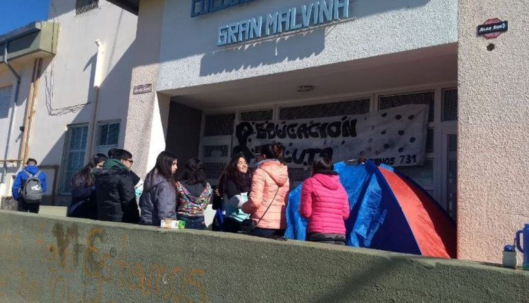 Esta mañana, en la Escuela 731 “Gran Malvina” se replicó la escena. En esta institución los padres se encuentran movilizados incluso antes del reclamo por los salarios de los docentes, sucede que las obras de refacción están demoradas y pasaron todo el invierno sin calefacción, esas tareas aunque los docentes retornen a las aulas no están resueltas.