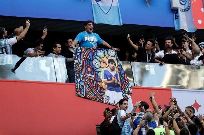 Diego Armando Maradona dijo presente en el estadio desde temprano como en los dos partidos anteriores de la Argentina.