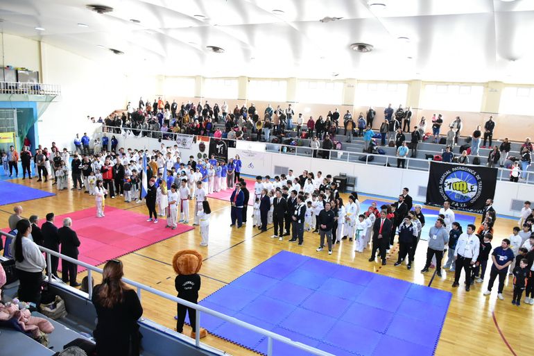 Encabezó el acto el director general de Deportes Martín Gurisich, en un gimnasio repleto, donde se dieron cita más de una veintena de escuela de la región, tanto de Comodoro como de Caleta Olivia, Pico Truncado, Trelew y Río Negro.
