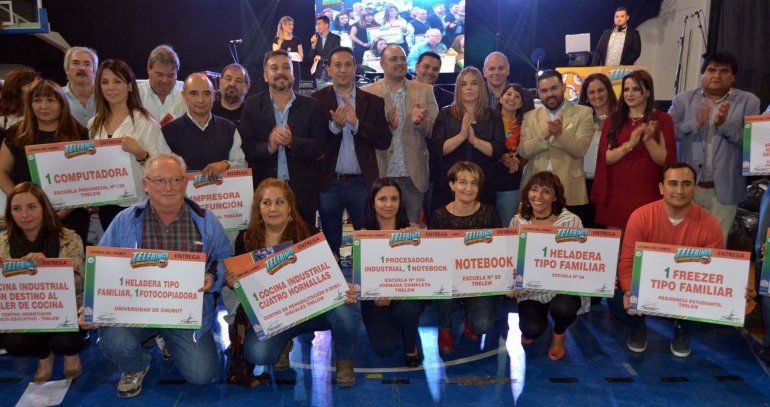 Con un Gimnasio Municipal Nº 1 colmado de público, el Telebingo fue parte de los festejos por el 131 Aniversario de Trelew que comenzaron a tempranas horas de la tarde del viernes con demostraciones de danzas a cargo de clubes de abuelos y grupos de ballet de los distintos talleres municipales, además de sorteos de distintos premios entre el público, para cerrar la noche con la presencia del Extraordinario que dejó cuatro de los cinco premios a Bingo en la ciudad agasajada. Y como es costumbre en cada edición del juego de la familia chubutense, el Instituto de Asistencia Social (IAS) Lotería del Chubut, entregó bienes de acción a 20 instituciones sociales, deportivas y culturales, además de instituciones educativas y organismos del lugar.