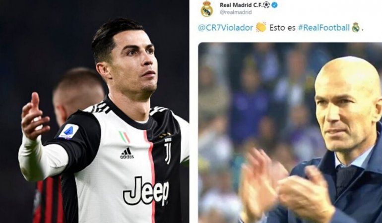 "@CR7Violador Esto es #RealFootball", fue el texto que publicó la cuenta, que tiene más de 33 millones de seguidores en esa red social. El mismo fue acompañado con un video del DT Zinedine Zidane aplaudiendo.