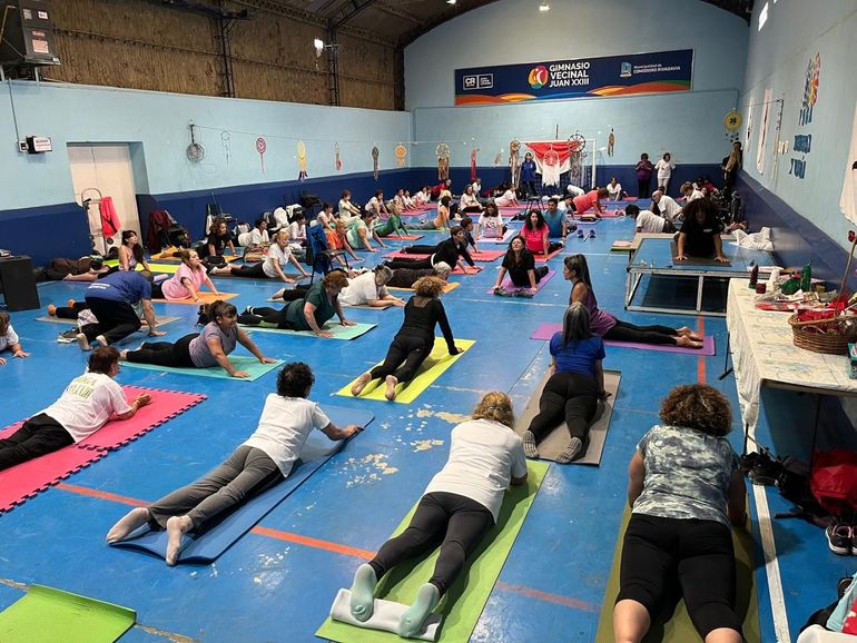 El último sábado, se llevó adelante el cierre de la temporada 2025 de yoga, con un encuentro denominado “Unión y bien estar”, en el gimnasio del barrio Juan XXIII.