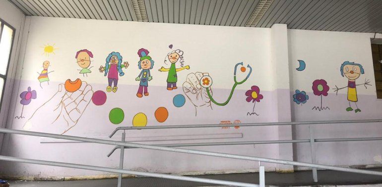 En esta ocasión, el grupo coordinado por la profesora y muralista Carolina Barrientos, junto a los Payamédicos, pintaron el Centro de Rehabilitación del Hospital Regional con dibujos que realizados por los niños que se encuentran en el lugar.
