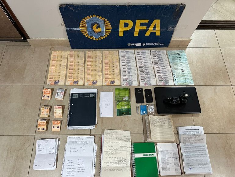 Se secuestraron: $ 2.363.7000 de pesos, dos motos, tres autos marca Peugeot, Audi y una camioneta pickup Ford, pendrives; un disco rígido, dos chip de teléfonos celulares, una tablet, cinco notebooks; una CPU, 15 celulares, tres computadoras de escritorio y documentación de interés para la causa.