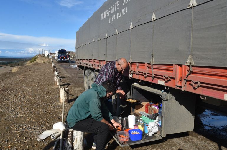 Varios de ellos, acostumbrados a realizar extensos viajes y afrontar peripecias, prepararon su almuerzo al costado de sus rodados (foto) armándose de paciencia para que transcurrieran las horas.