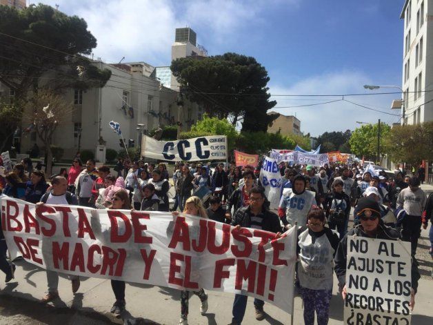 Pasadas las 10 de la mañana un nutrido grupo de trabajadores de la educación: docentes y auxiliares, junto a personal de la salud, judiciales, miembros de la CCC, el PTP y el Movimiento Evita se movilizaron por el centro de la ciudad de Comodoro Rivadavia. La concentración se inició en la Plaza Kompuchewe y se realizó un breve acto a los pies del Cerro Chenque, donde se mantuvo cortado el acceso norte a la ciudad por unos minutos.