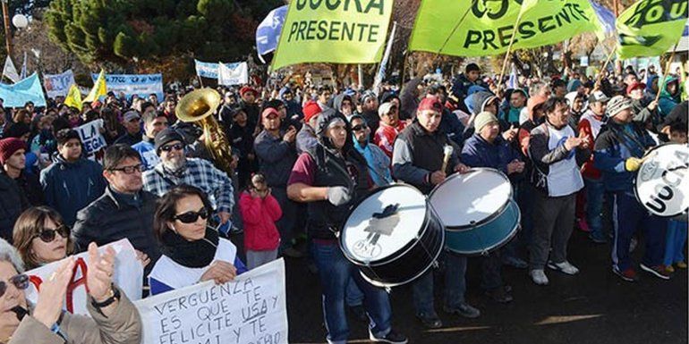 Según publica hoy Jornada, la cita fue en la esquina de San Martín y Mitre, área de la plaza San Martín y el edificio de la Municipalidad, donde se vertieron críticas al gobernador Mariano Arcioni por las advertencias de descontar del sueldo los días de paro, y retirar al Gobierno del diálogo con los gremios.