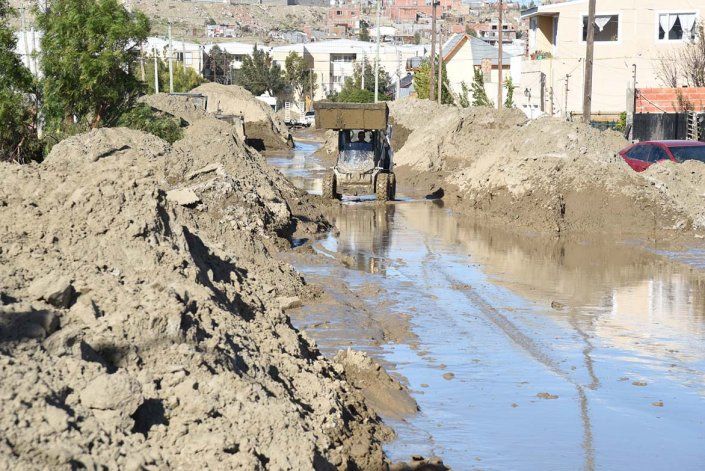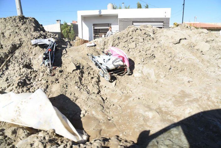 Cuando han transcurrido 25 días desde que se inició el devastador temporal en Comodoro Rivadavia, los habitantes de la calle Cipriano Alonso y alrededores continúan rodeados de lodo y grandes montículos de arena sobre sus veredas que impiden la circulación por el lugar. Muchos siguen sacando barro de sus domicilios y esperan la llegada de bateas para arrojar sus pertenencias que fueron arruinadas por la inundación.