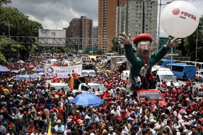 Según informó MinutoUno, cargando un retrato del fallecido presidente Hugo Chávez (1999-2013) y del libertador Simón Bolívar, la primera dama Cilia Flores y la ex canciller Delcy Rodríguez, ahora asambleístas, encabezaron una marcha de seguidores del gobierno.