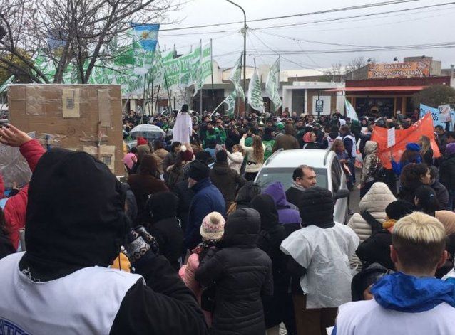 En el marco de un paro docente nacional convocado por CTERA en apoyo a los docentes de Chubut y en repudio a los hechos ocurridos en las últimas horas, las distintas columnas se concentraron frente a la sede del Ministerio de Educación, y desde allí marcharon por distintas calles hasta confluir en la intersección de Moreno y Vacchina, a metros de Casa de Gobierno y en el lugar donde el año pasado estuvo instalada la carpa de la MUS durante el conflicto por las paritarias provinciales.