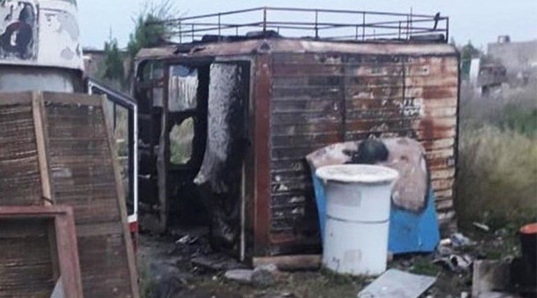 La casilla estaba dentro de la chacra 26, lote 21, en el oeste de Trelew, en medio de baldío lleno de escombros donde también hay colectivo abandonado.