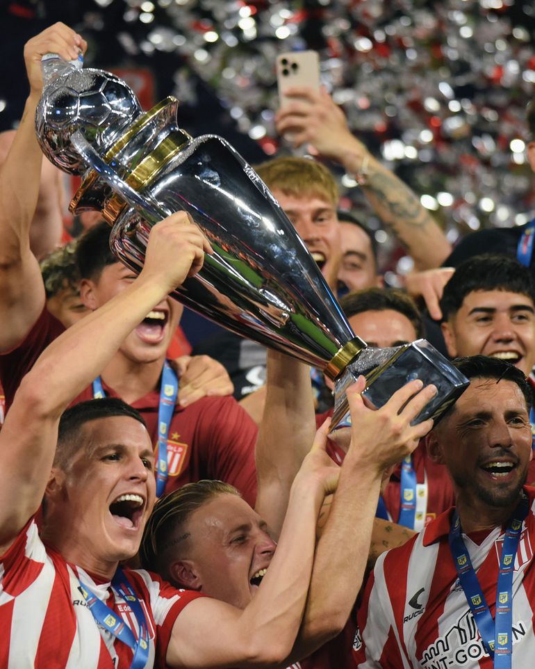 Estudiantes de La Plata, con su presidente Juan Sebastián Verón alentando desde las tribunas, se consagró este sábado campeón del torneo Clausura del fútbol argentino de Primera división, al vencer por penales 5-4 a Racing Club de Avellaneda en la final del certamen de la Liga Profesional.