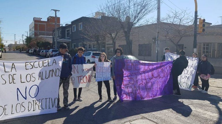 Los estudiantes con banderas pidieron la renuncia de Graciela Mayer la directora de la institución y además de los casos de “malos tratos”, lamentó la falta de proyecto técnico.