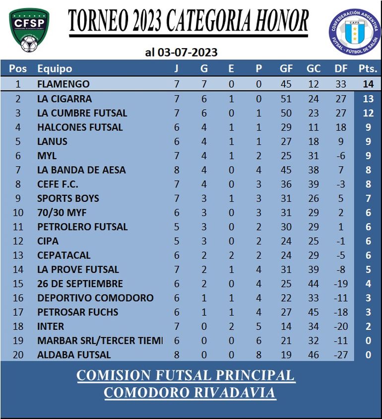 20:00 Petrolero Futsal vs Flamengo, Honor, 8ª fecha.