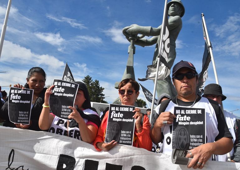 Estos últimos habían realizado previamente un acto individual en la plazoleta del Gorosito para expresar su solidaridad con los más de novecientos trabajadores despedidos en la fábrica de neumáticos FATE ubicada en San Fernando (Bs. As), advirtiendo que ello es consecuencia de las políticas de destrucción de la industria nacional que lleva adelante el gobierno de Javier Milei.