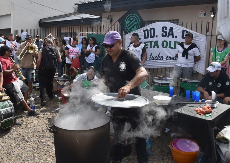 La manifestación de trabajadores finalizó frente al edificio de la Dirección Regional Zona Norte de Escuelas, cuyo acceso estuvo bloqueado con pancartas y además se armó una olla popular enlña que se preparó un guiso de lentejas.