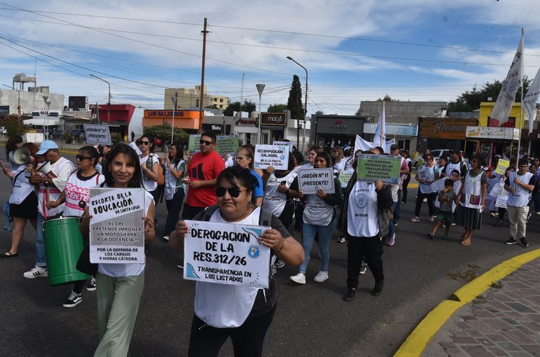 El Frente Sindical de estatales motorizó a mediodía una multitudinaria marcha que se desplazó por las avenidas San Martín y Eva Perón.
