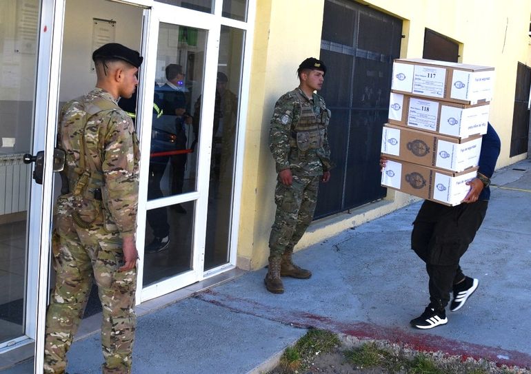 En los centros de votación ubicados en diferentes barrios del ejido urbano, las urnas y el material electoral complementario que incluye a las Boletas Únicas de Papel (BUP) fue recibido por personal del Ejército perteneciente al Regimiento de Caballería de Tanques 9, que tiene asiento en Puerto Deseado.