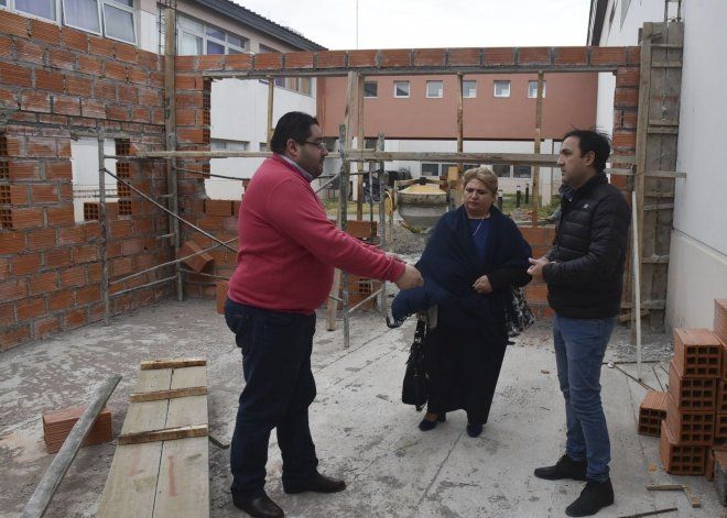 En el nosocomio caletense fueron recibidos por el director administrativo Juan Basiglio y el capataz de la empresa Arispe Construcciones que se adjudicó los trabajos que se ejecutan en la planta baja, entre dos alas del moderno edificio.