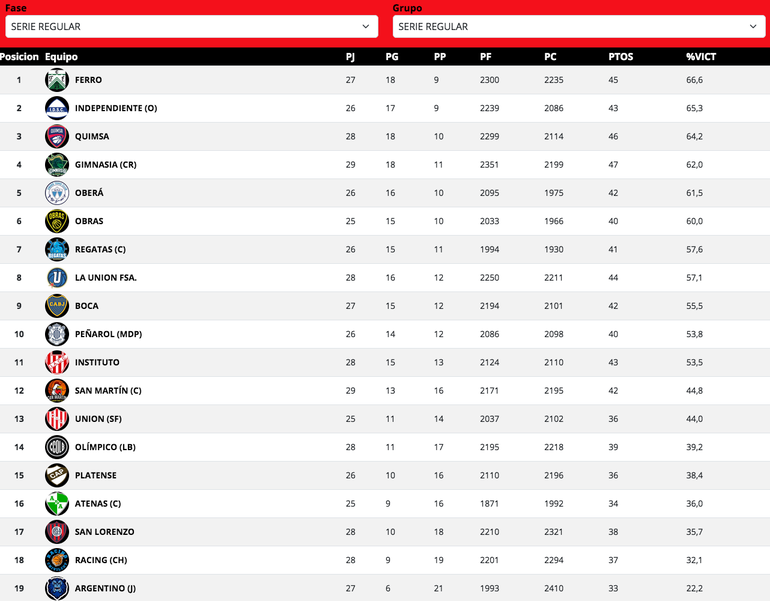 Gimnasia (31+25+19+27): Emiliano Toretta 19, Federico Grun 8, Martiniano Dato 16, Anyelo Cisneros 11 y Bryan Carabalí 11 (fi); Marcos Chacón 14, Mauro Cosolito 0, Carlos Rivero 8, Sebastián Carrasco 10, Kenneth Horton 2, Jesús Centeno 3 y Ciro Melo 0. DT: Pablo Favarel.