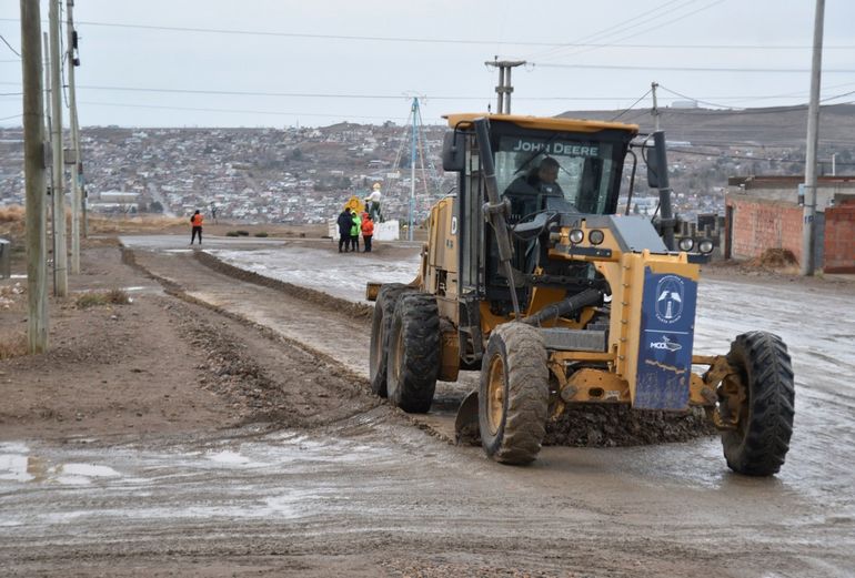 El operativo de acondicionamiento de calles de tierra de barrios periféricos de Caleta Olivia que quedaron prácticamente intransitables comenzó a las nueve de la mañana de este miércoles bajo la coordinación del intendente Pablo Carrizo y tuvo su punto de concentración en la rotonda de acceso al barrio Rotary 23.
