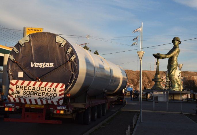 Los transportes con sus carretones tienen una dimensión de 40 metros, de los cuales 31 corresponden a las columnas metálicas de 3,30 metros de diámetro que se fabrican en la localidad santafecina de Esperanza para el Parque Eólico “Bicentenario” que será el más grande de los cuatro que han comenzado a instalarse en territorio santacruceño y está siendo emplazando a 17 kilómetros de Jaramillo.