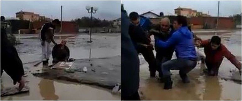 Fue en ese instante cuando un grupo de voluntarios del Centro de Veteranos de Guerra, UOCRA y Camioneros asistieron al hombre. El rescate quedó registrado y luego fue viralizado rápidamente por las redes sociales.