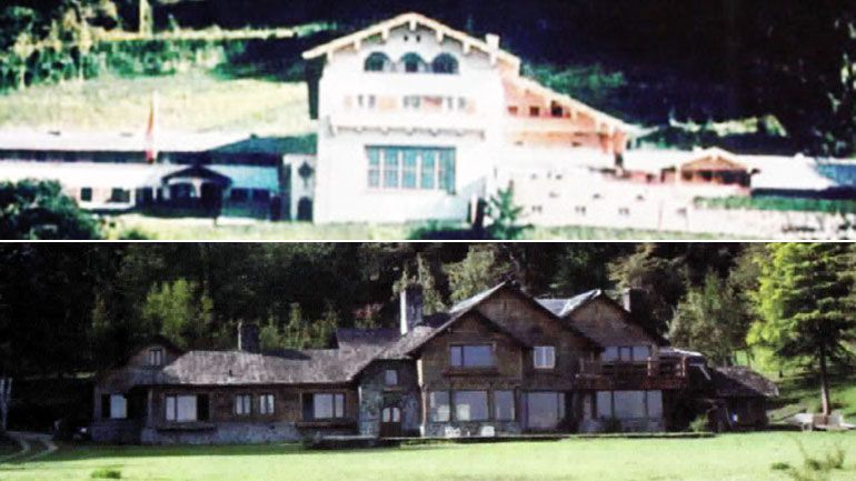Arriba, el Berghof, en los Alpes Bávaros. Abajo, la residencia Inalco, en el sur argentino.