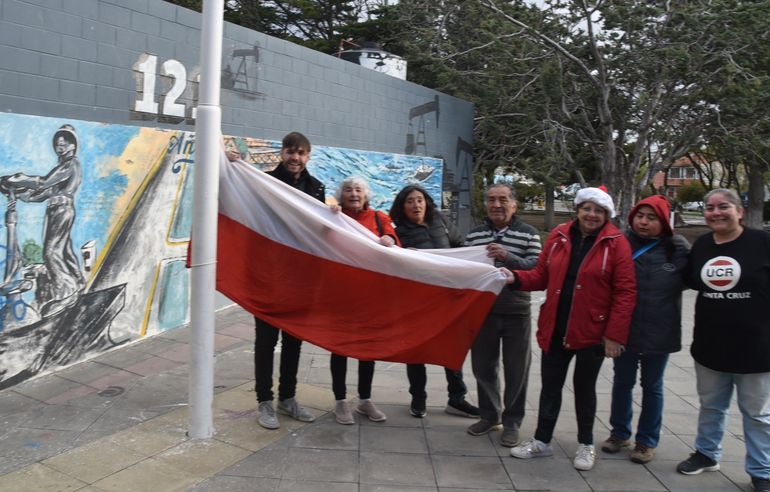 En el sencillo homenaje convocado por la delegada del Comité Nacional, Viviana Castro, se desplegó una bandera con los colores rojo y blanco que identifican al radicalismo.