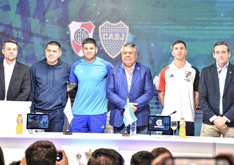 Y posteriormente tomó la palabra la máxima autoridad, Claudio Ta-pia, quien se presentó junto a Juan Román Riquelme, presidente de Boca, e Ignacio Villarroel, vicepresidente segundo de River. También habló Agustín Calleri, presidente de la Agencia Córdoba Deportes.
