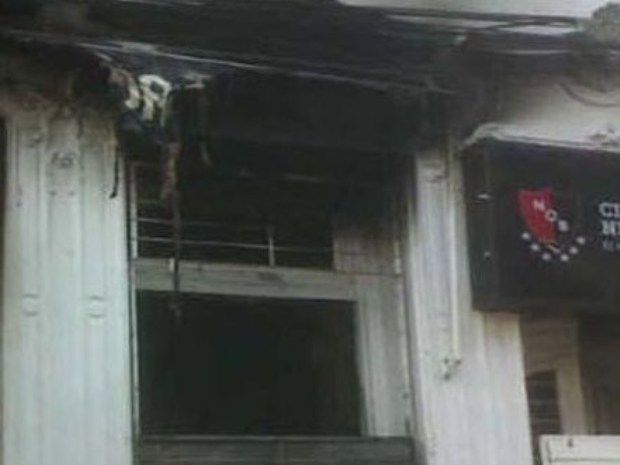 El local sufrió graves pérdidas materiales y había restos de pintura de aerosol, chapones caídos en el piso y la indumentaria del club resultó afectada por las llamas.