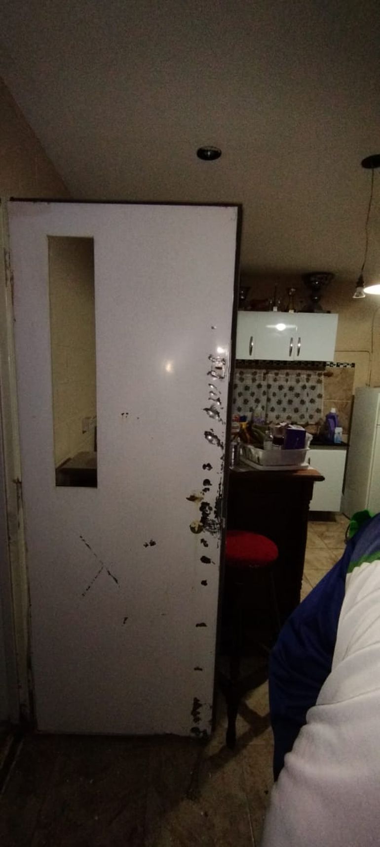 E.R.B, que se encontraba a cargo del cuidado de la vivienda, se dirigió al lugar y logró retener al ladrón dentro de una habitación hasta la presencia del personal policial. Según consta en la denuncia, el denunciante le provocó lesiones leves en la pierna izquierda al agresor con la misma barreta que había utilizado para forzar la entrada. En el interior de la casa se constató un gran desorden en el ambiente de la habitación y la cocina.