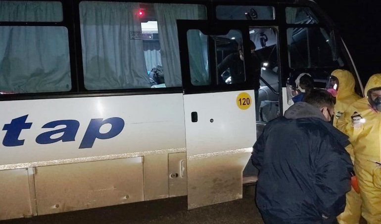 El informe de prensa dado a conocer por el gremio petrolero que lidera Claudio Vidal, indica que el colectivo que ingresó por la Ruta 26 pertenece a Etap y que en interior viajaban once trabajadores petroleros de la empresa de servicios Tuboscope, procedentes de Comodoro Rivadavia, ciudad que fue declarada con circulación comunitaria del virus