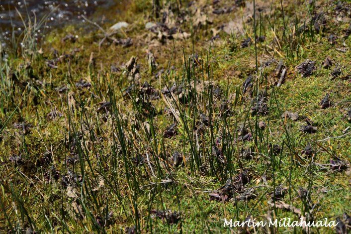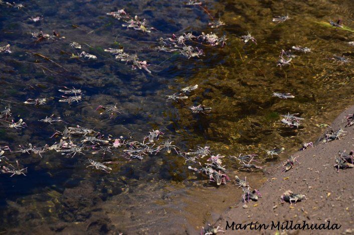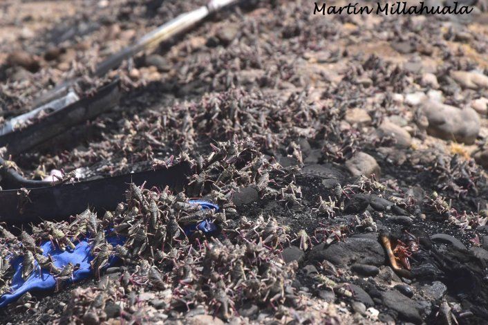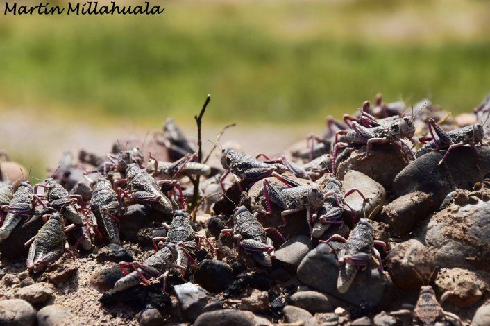 Invasión de tucuras en Cushamen: hay focos de 300 metros de ancho y mil de largo