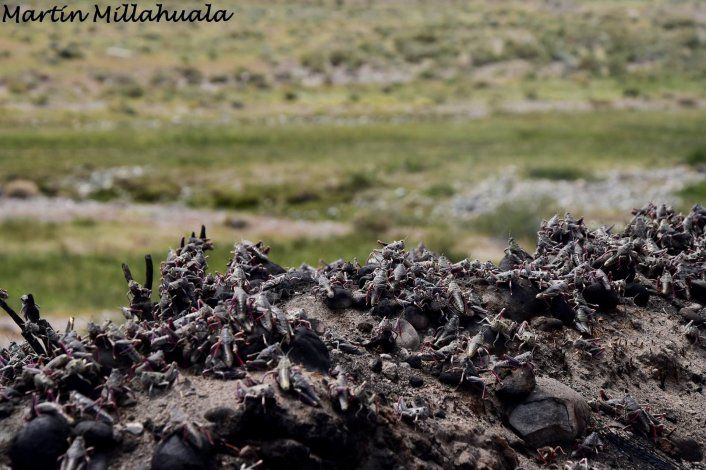 Desde la Comuna Rural de Cushamen aseguraron que la situación es "incontrolable" y detallaron que ya hay más de 28 lotes afectados por estos insectos que cercanos a la familia de langostas. Piden que se realicen fumigaciones aéreas.