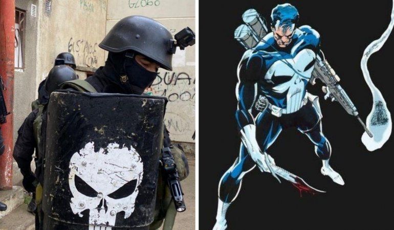Se trata del controvertido símbolo del personaje de Marvel “The Punisher”, el castigador, que significa la injusticia que vuelve a los delincuentes o “justicia por mano propia”.