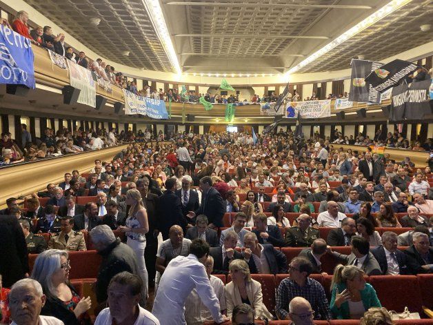 Si bien habían elegido al Chalet Huergo como lugar para la asunción, por cuestiones climáticas decidieron llevar a cabo este acto en en el Cine Teatro Español. La ceremonia comenzó a las 11 y terminó a las 14.
