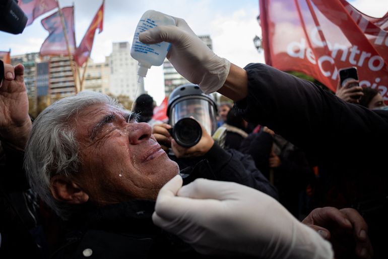 Además, este miércoles, los gases de la policía volvieron a tener como objetivo a los trabajadores de prensa. Uno de ellos es Antonio Becerra, el fotógrafo de Tiempo Argentino que el mes pasado tuvo un encontronazo con el asesor presidencial Santiago Caputo cuando cubría la previa del debate televisivo de candidatos a legisladores porteños.