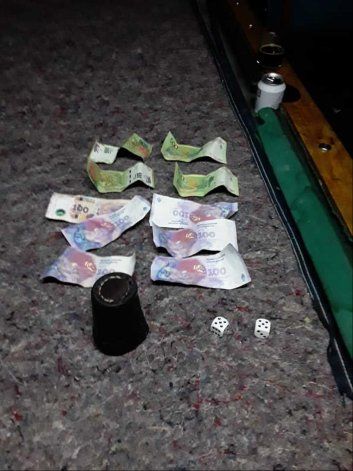 El trabajo policial advirtió apuestas por dinero, se procedió a la identificación de los presentes y fueron secuestrados los elementos que estaban en la mesa: unos 2600 pesos, un cubilete y dos dados.