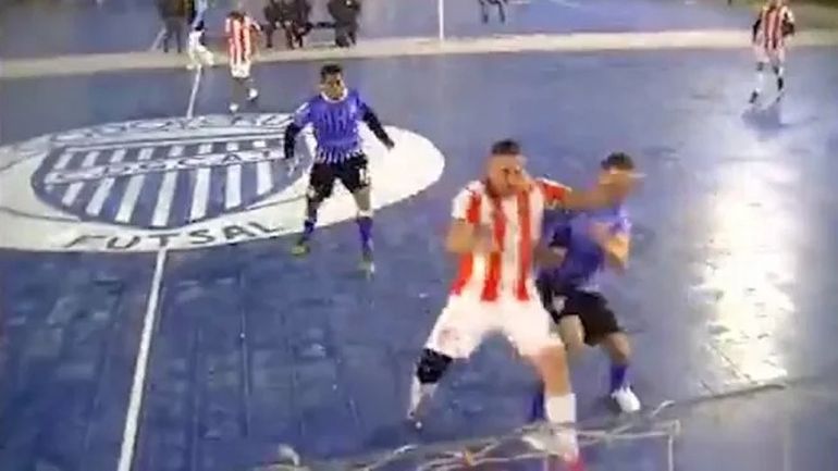 En cuestión, José Enrique Loscocco fue a disputar un balón dividido contra Mariano Jaurrieta y le aplicó un brutal codazo en la cara que lo dejó nocaut.